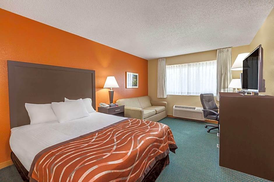 Start your day right with a delicious breakfast included in your stay. The motel also offers an array of exciting amenities to make your stay comfortable and enjoyable. Take a dip in the indoor swimming pool or relax in the hot tub/jacuzzi. Stay connected with free Wi-Fi and take advantage of the convenient shuttle service to explore the city. The motel also boasts a spa, fitness center, and a sun deck for those looking to unwind and rejuvenate.